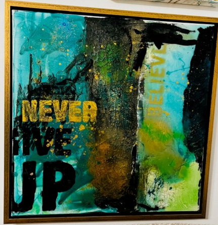 50x50cm im Schattenfugenrahmen. Never give up
