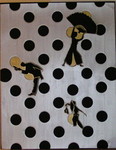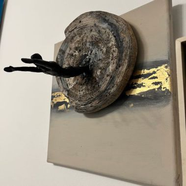 Sprung, Holzscheibe Figur 20x20cm